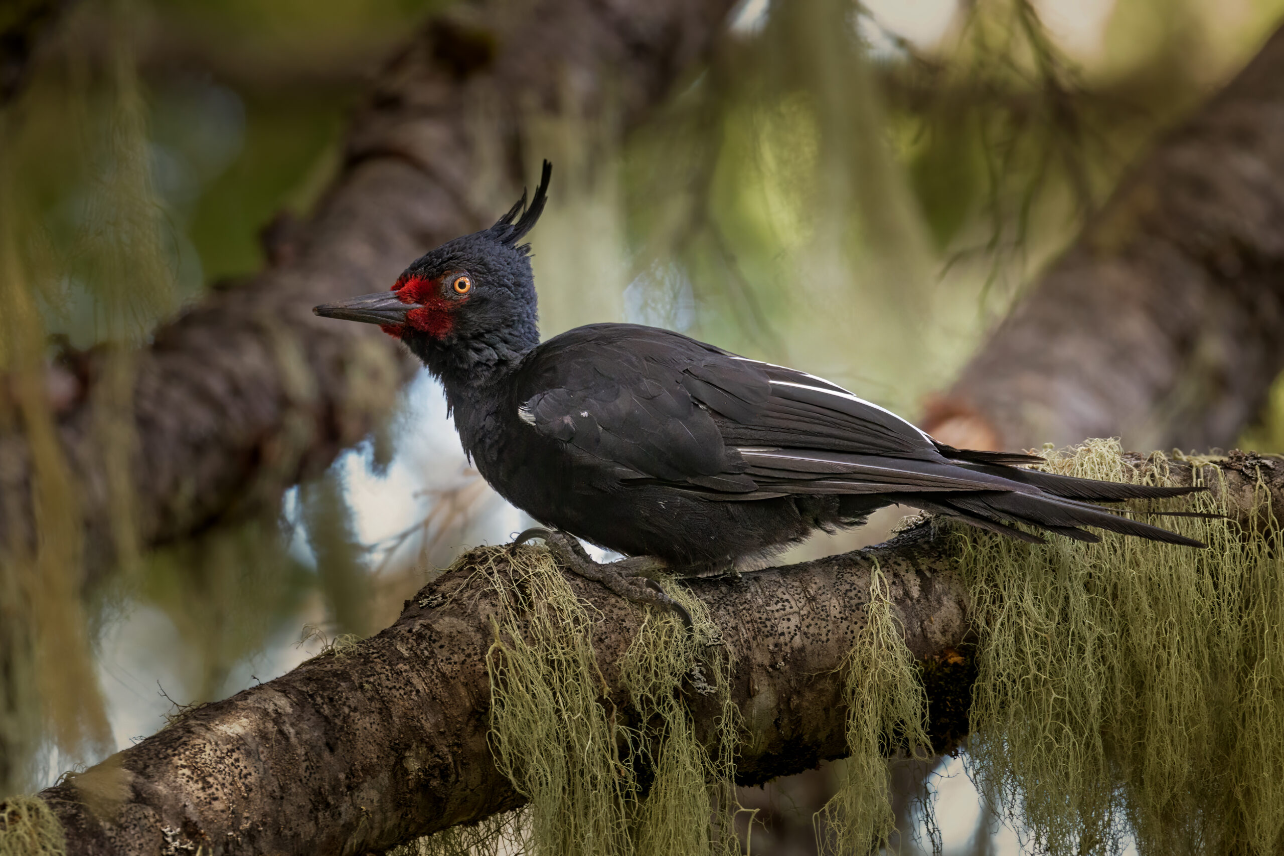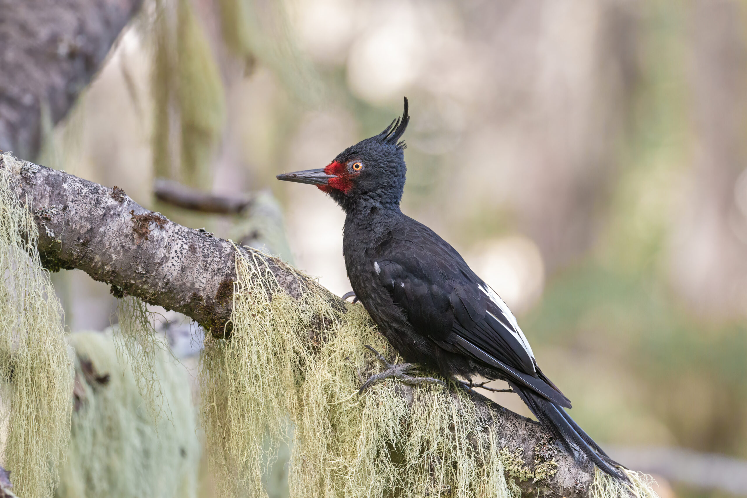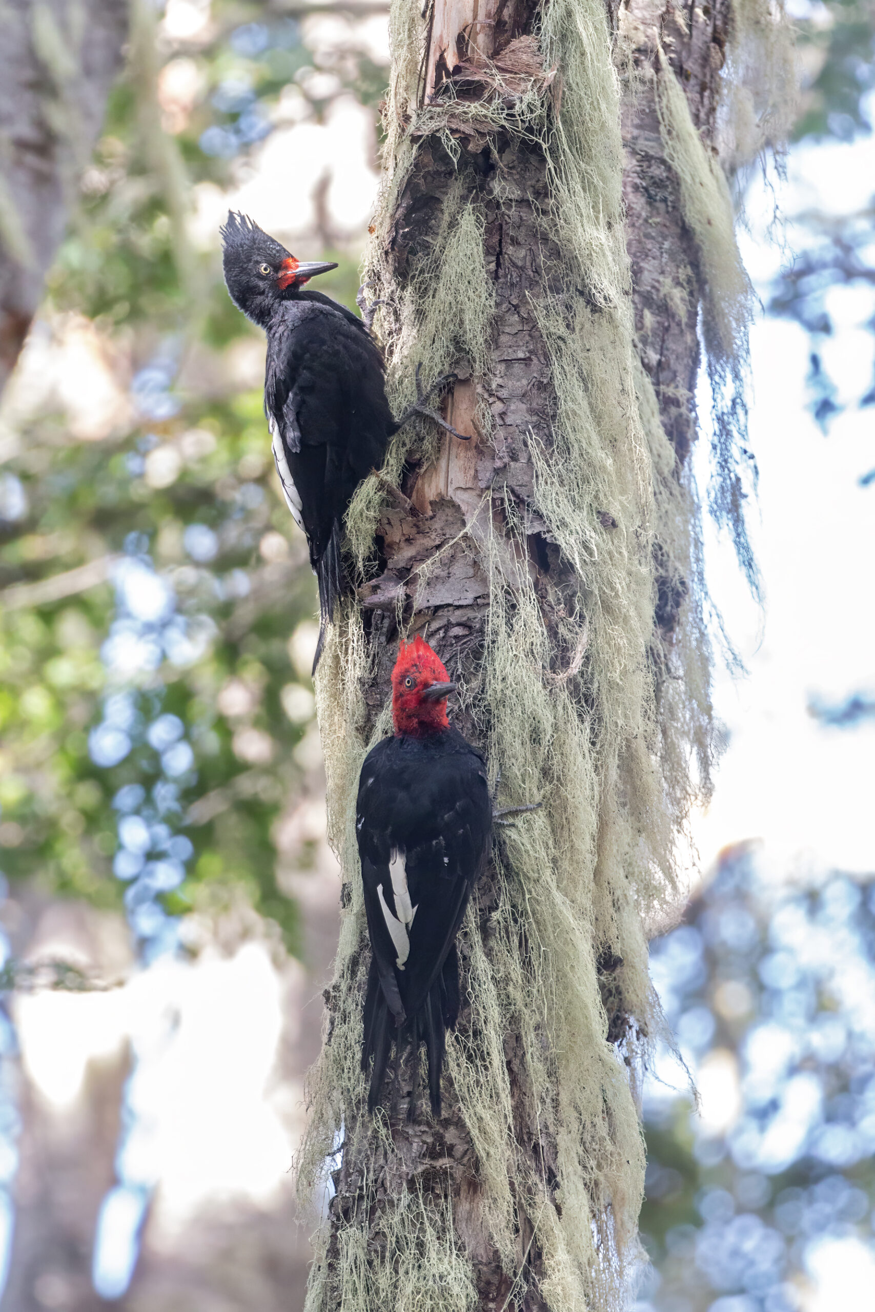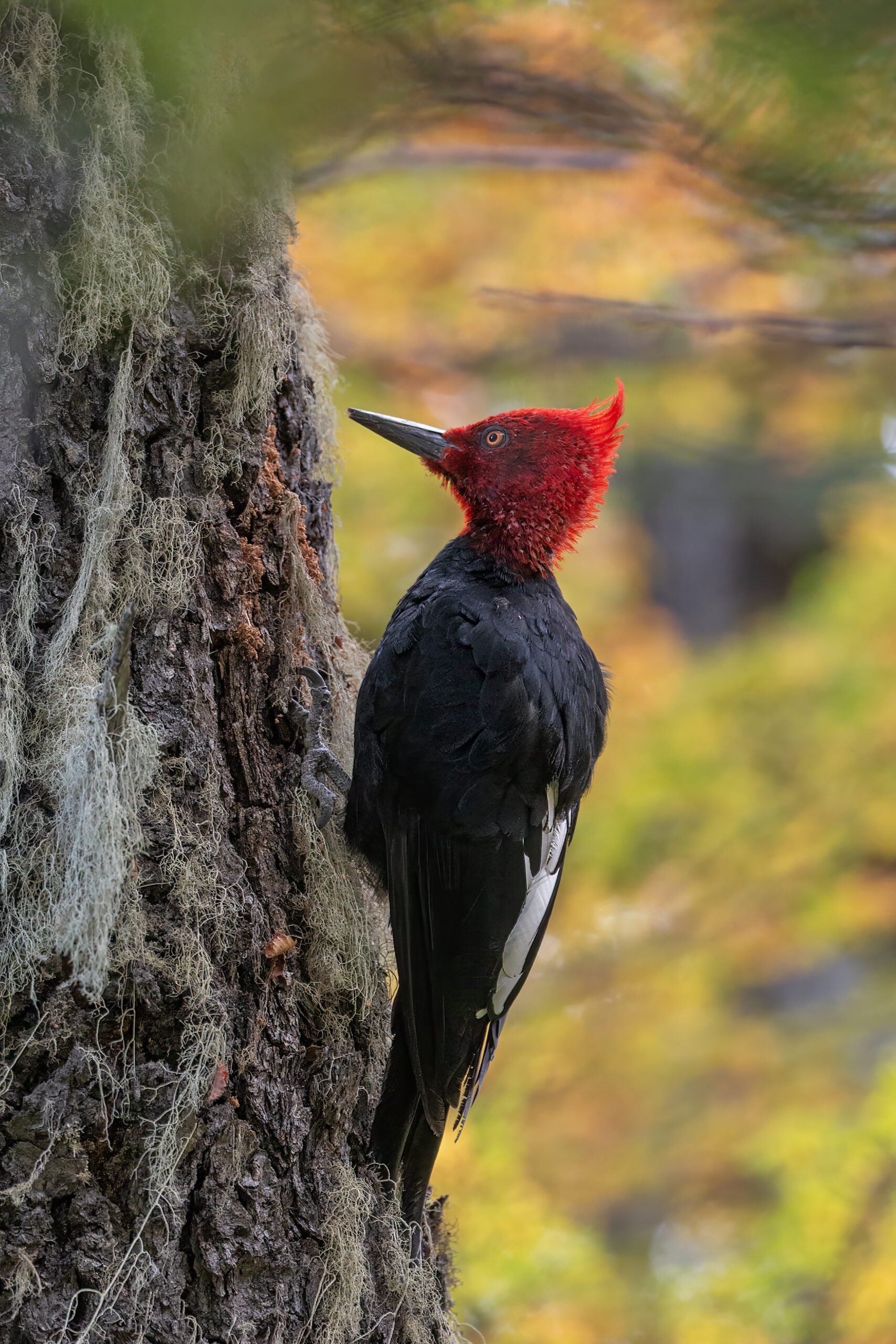 Uno de los máximos representantes del bosque araucano. El macho posee la cabeza roja y la hembra la cabeza negra con un rulo. Participar de sus estudios me da la posibilidad de lograr fotos especiales.