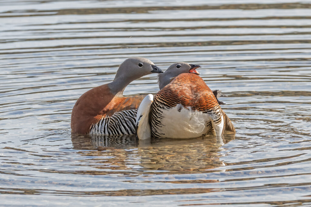 Por otro lado los cauquenes, también vocalizaban mucho, y hubo un pellizco de parte de uno hacia el otro. En algunas aves este comportamiento se da previo a una cópula, creo que en este caso la cópula falló el intento.
