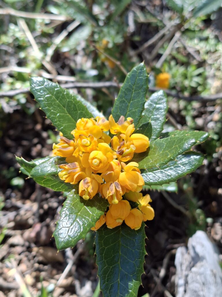 El bosque está sumamente castigado por la presencia de Vacas, con lo cual hay MUY poca variedad de flora… predomina el pasto y el Michay de Lenga (Berberis serratodentata).