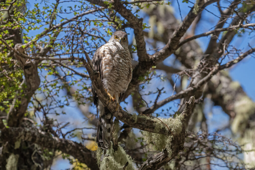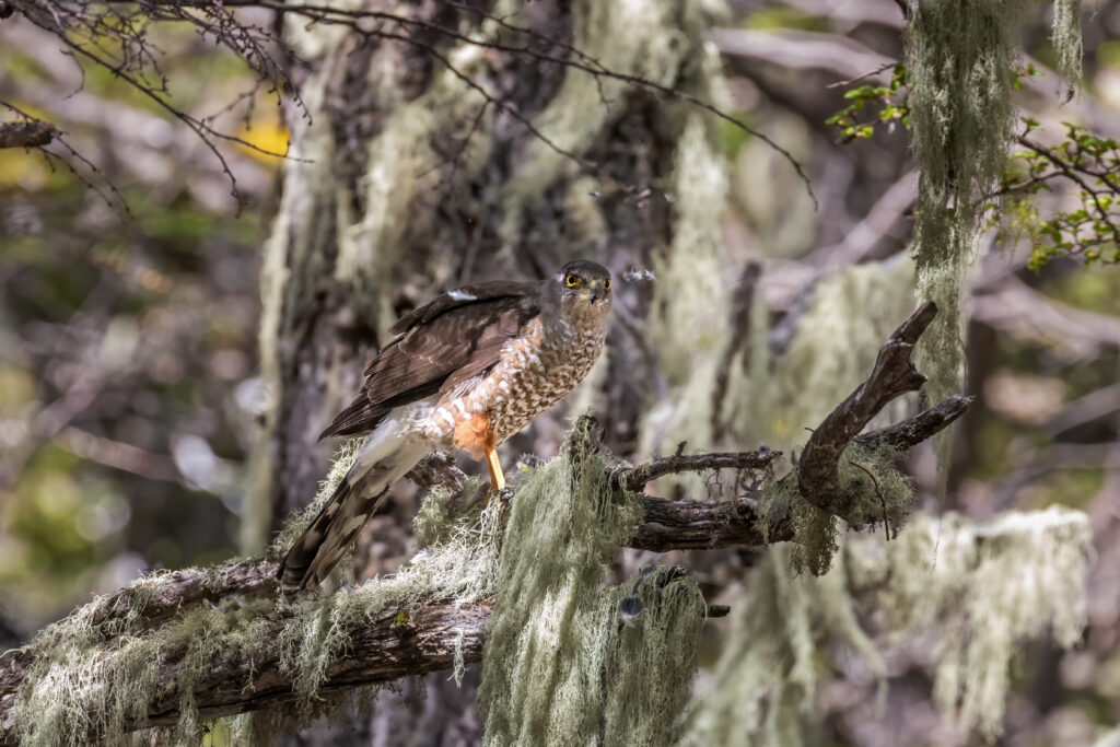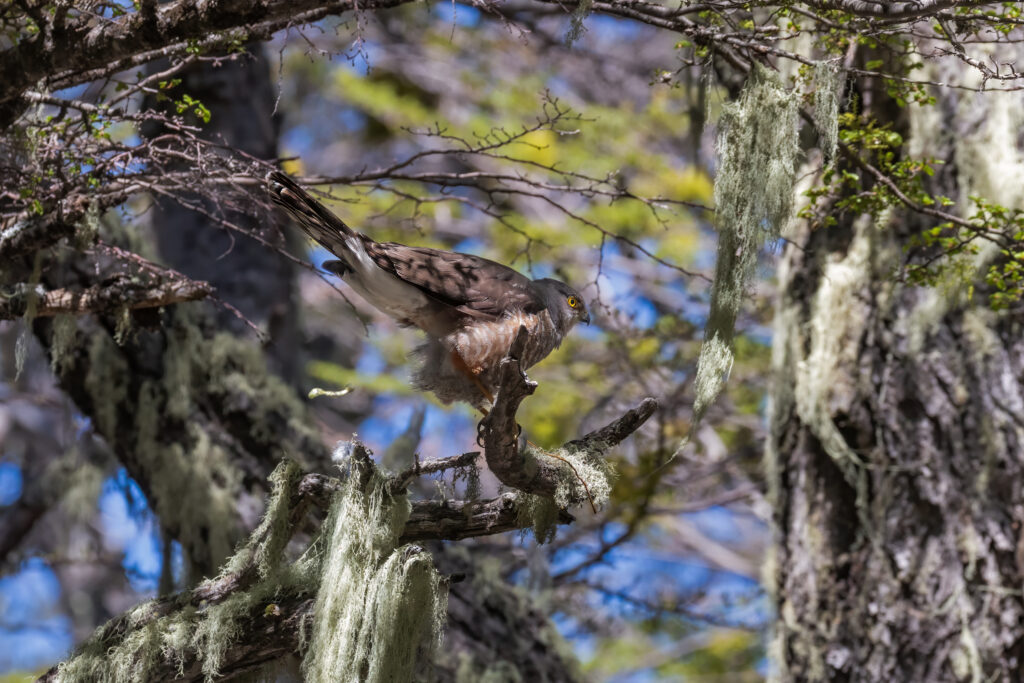 En lo alto de una rama de Lenga, un Peuquito (Astor chilensis, ex Accipiter chilensis), desplumaba felizmente su reciente presa. Sí, esa acción, se había realizado justo antes de que yo llegara. Cosas del destino, tenía que apreciar estos momentos salvajes que muy pocas veces podemos visualizar.