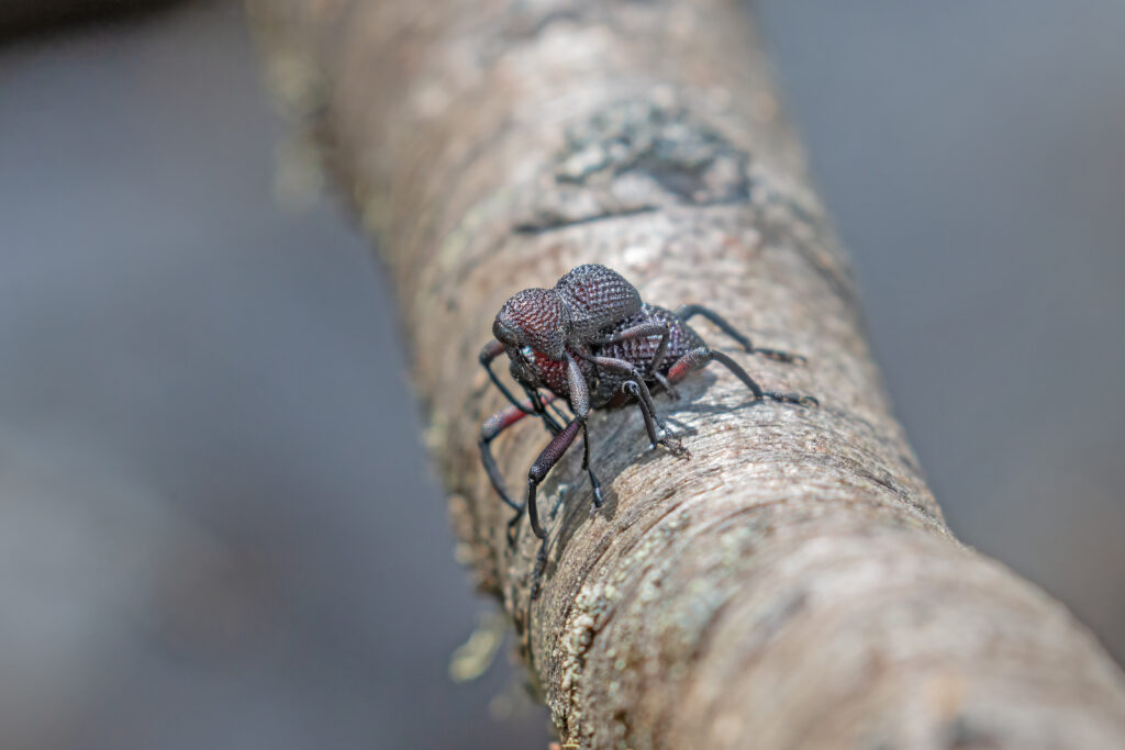 También llamado: «burrito», «caballito» o «cabrito», es un insecto nativo, hervíboro. La hembra es más grande que el macho (se ve claramente en la foto). Al igual que todos los coleópteros, tiene el primer par de alas (o élitros) endurecido, formando una especie de caparazón. En esta especie, además, los élitros son rugosos y están soldados entre sí, por lo que no vuelan. Cuando se siente amenazado, se queda inmóvil y se deja caer al suelo, haciéndose pasar por muerto, comportamiento que se denomina necro-mimetismo.