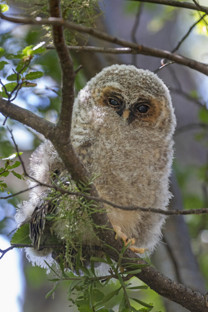 Este pomponcito es una Strix casi recién salida del nido. Aún posee gran parte del plumón. No vuelan (cuando salen del nido trepan por el tronco y se ubican en ramas).