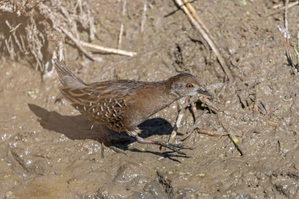 Por otro lado, la Gallineta anduvo de un lado para el otro, sin problemas, aprovechando sus grandes patas para desplazarse por el barro.