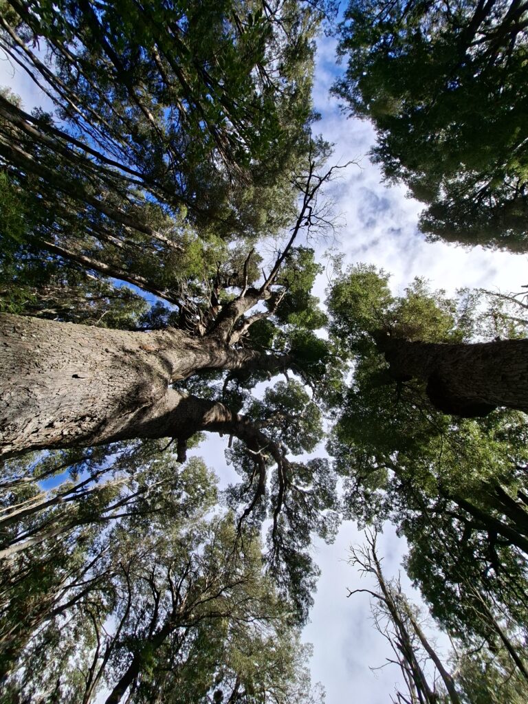 Avanzamos entre especies de flora nativas y exóticas: Coihue (Nothofagus dombeyi), Arrayán (Luma apiculata), Caña Colihue (Chusquea culeou) (nativas), y Zarzamora (Rubus ulmifolius).