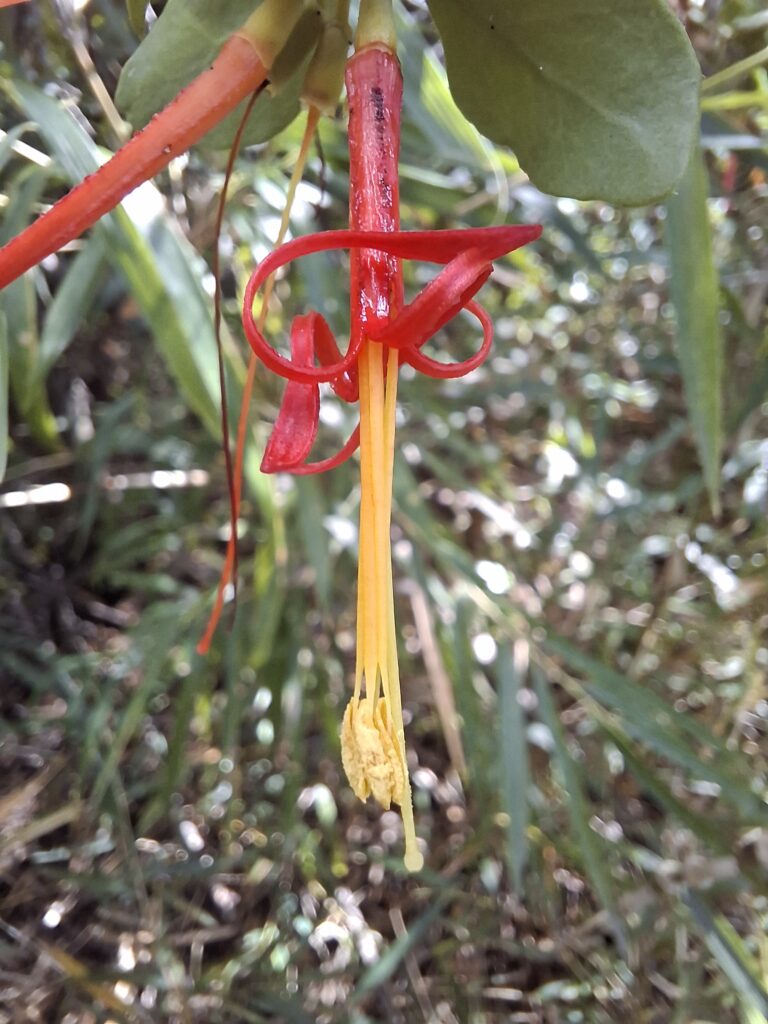 El Quintral es una planta hemiparásita que florece en invierno y constituye el principal alimento del Picaflor Rubí (Sephanoides sephaniodes) durante esa época. Además sus semillas son dispersadas casi exclusivamente por el Monito de Monte (Dromiciops gliroides), un marsupial endémico de los bosques andino patagónicos.