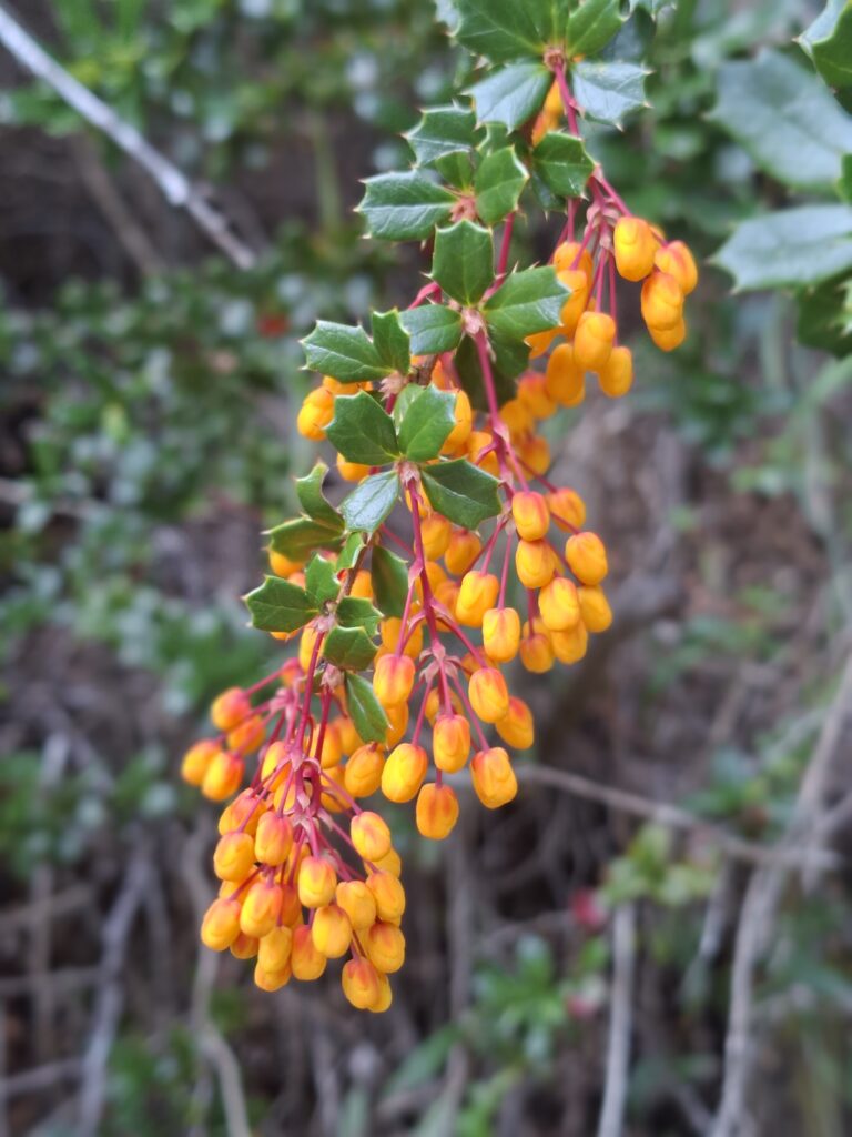 También disfrutamos de la presencia de Quintral (Tristerix corymbosus) con sus últimas flores (florece en invierno), y algún que otro Calafate (Berberis microphylla), Michay (Berberis darwinii) y Zarzaparrilla floreciendo (Ribes magellanicum) (todas nativas).