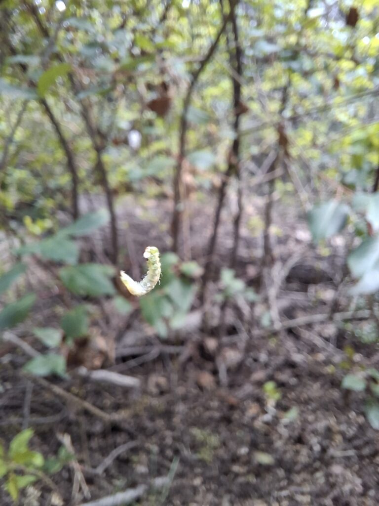 También me entretuve un ratito intentando fotografiar este «gusanito», probablemente futura mariposa, que colgaba de una línea de seda y ascendía hasta una hoja. Muy pequeño, muy movedizo (y el viento que no ayudaba en nada).