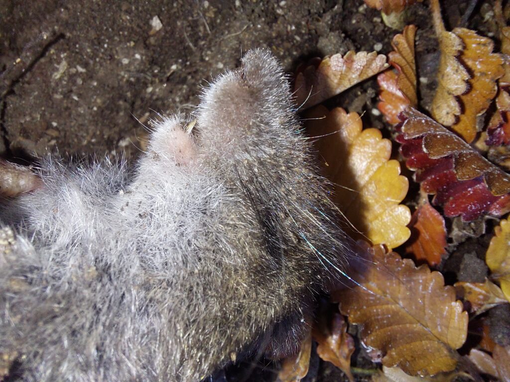 Pero antes de ellos, me crucé con este ejemplar: «ratón topo pardo», geoxus sp. Hubo varias cosas que me llamaron la atención: