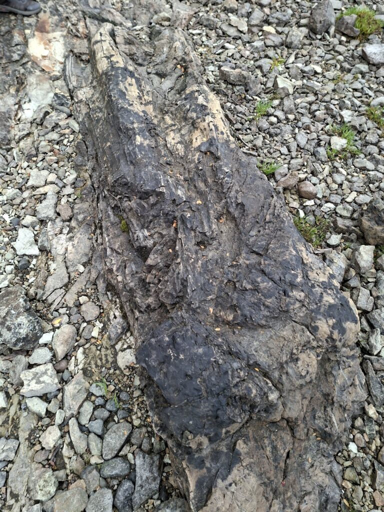Allí pudimos ver unos troncos fosilizados sobre la playa.