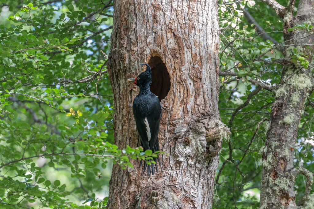 Con la sequía de este año, sobre todo a nivel nieve, la mayoría de los nacimientos se adelantaron prácticamente un mes. Hoy fui a recorrer el bosque con el objetivo de revisar un par de nidos de Carpintero Gigante (Campephilus magellanicus) que vienen atrasados con respecto a sus vecinos (que ya volaron…)